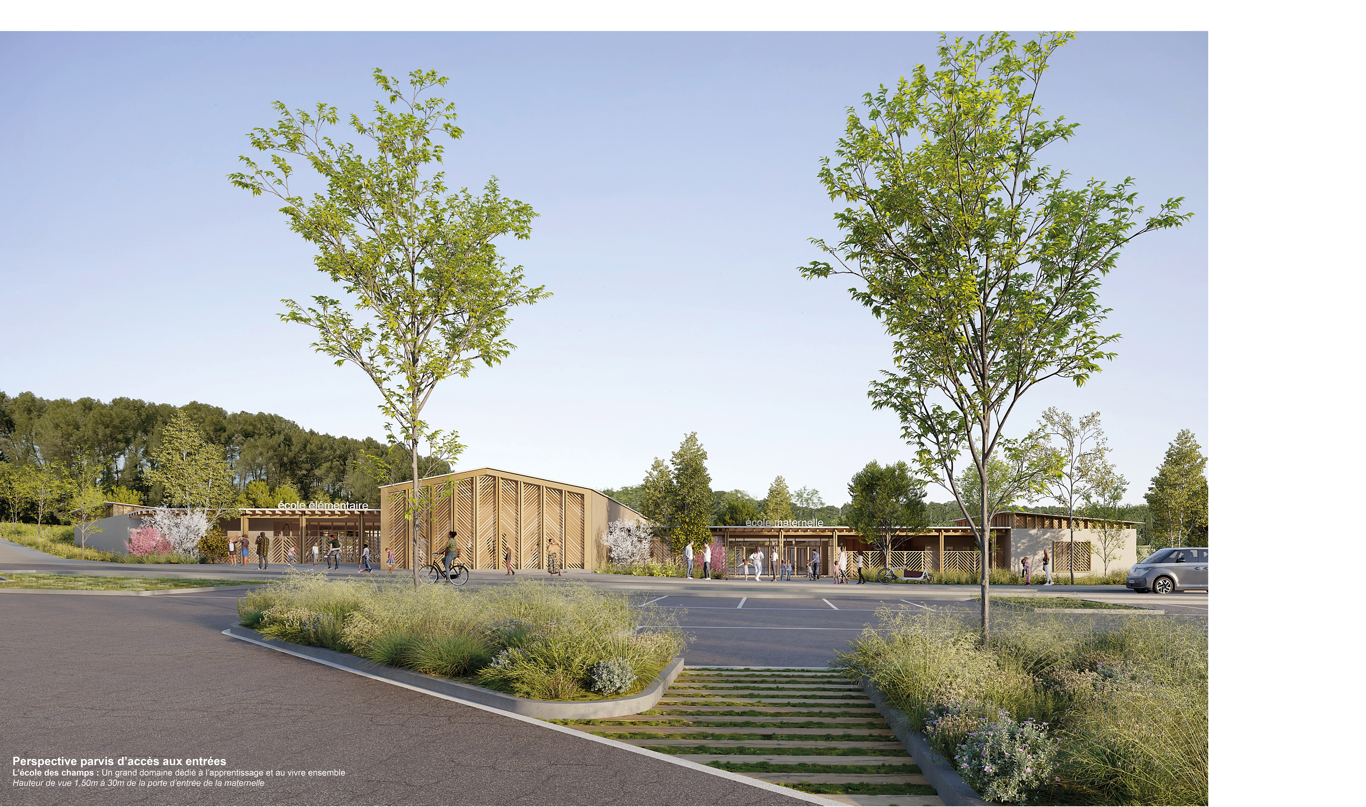 Le projet s’implante en limite d’urbanisation, sur un ancien terrain agricole. Les partis pris architecturaux et paysagers du projet s’inscrivent dans une conviction-intuition immédiate et partagée des architectes et paysagistes : celle de « venir habiter le paysage ». C’est sur ce principe de valorisation et de respect du site que le projet va se déployer à l’image un grand domaine agricole transformé en domaine du savoir et de la découverte.