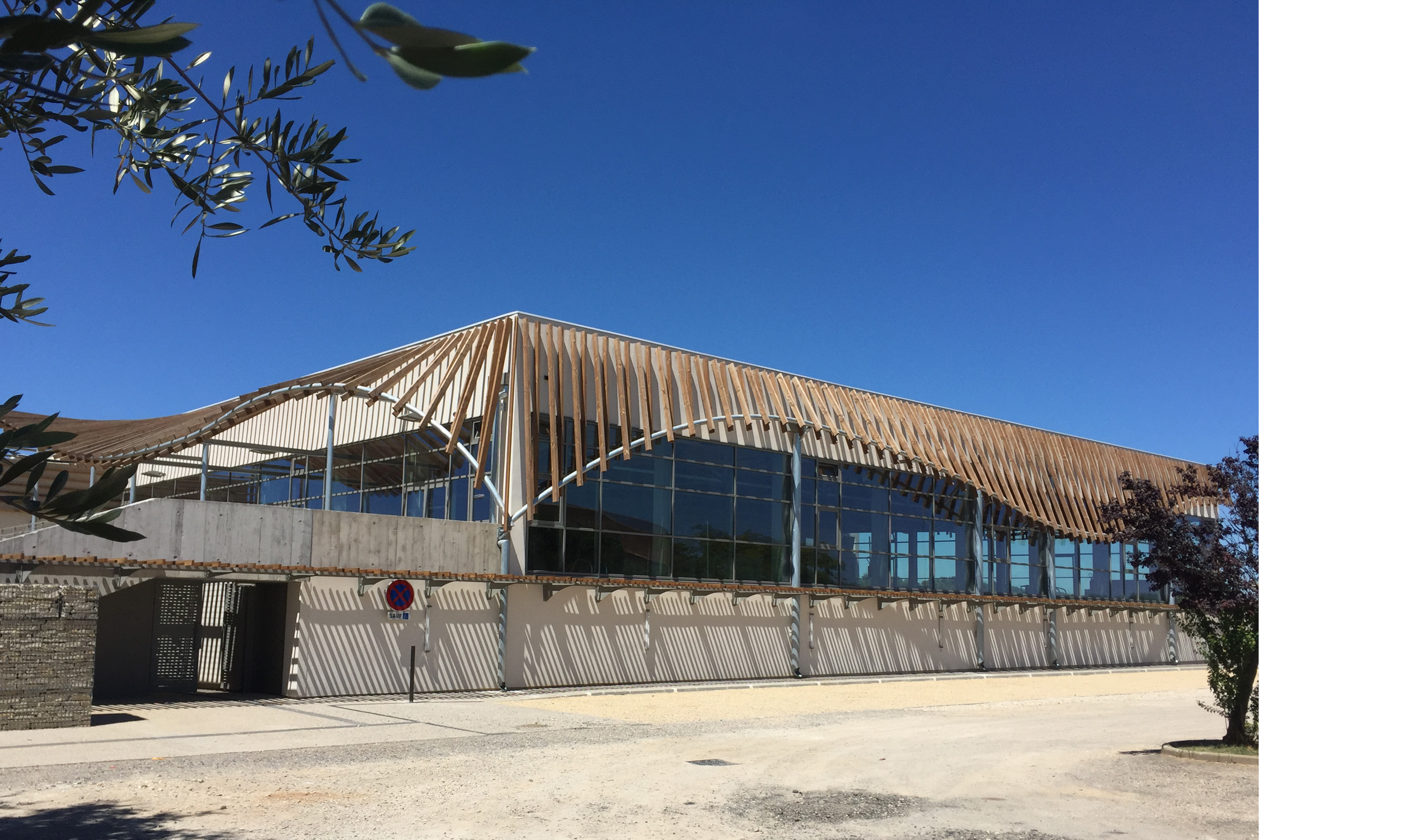 A Lansargues, les contraintes du site nous ont mené à penser l’organisation autrement. La parcelle étroite et la proximité d’une nappe phréatique ont signé l’impossibilité de placer les bassins du futur ouvrage au rez-de-chaussée.